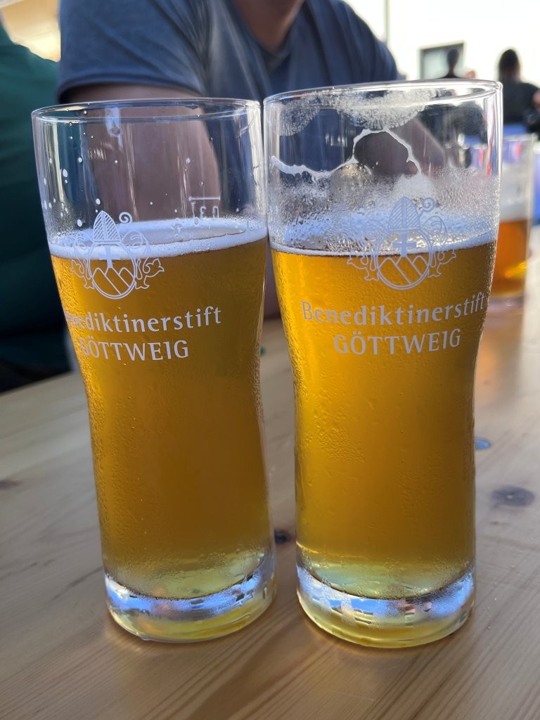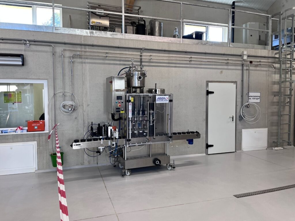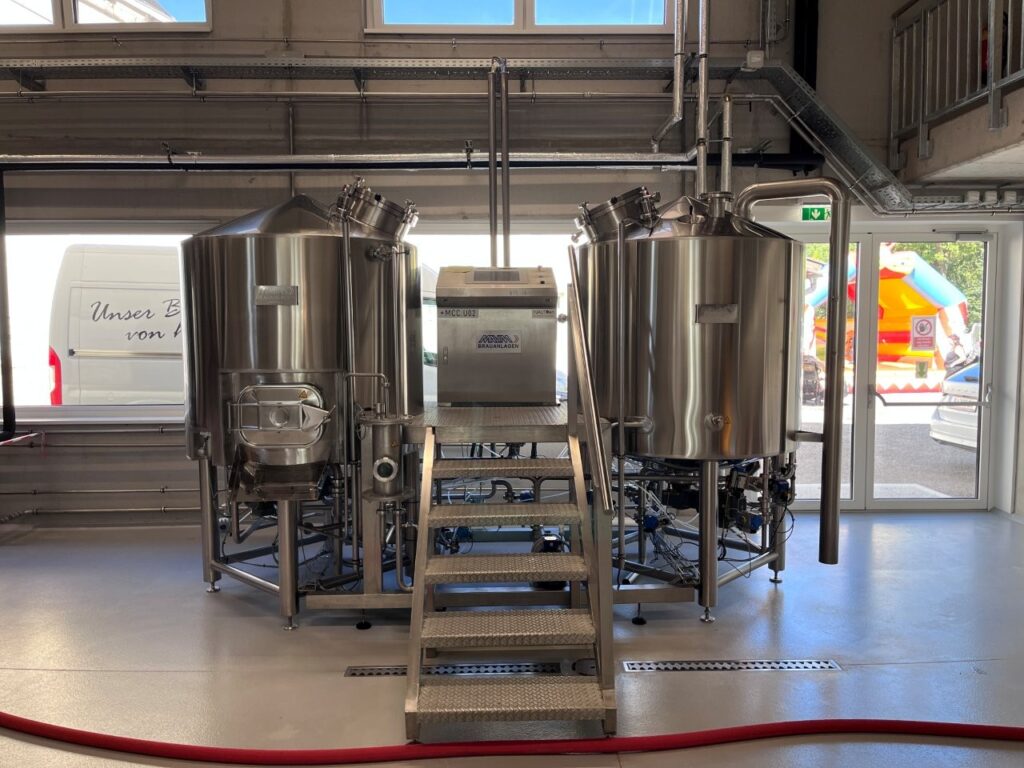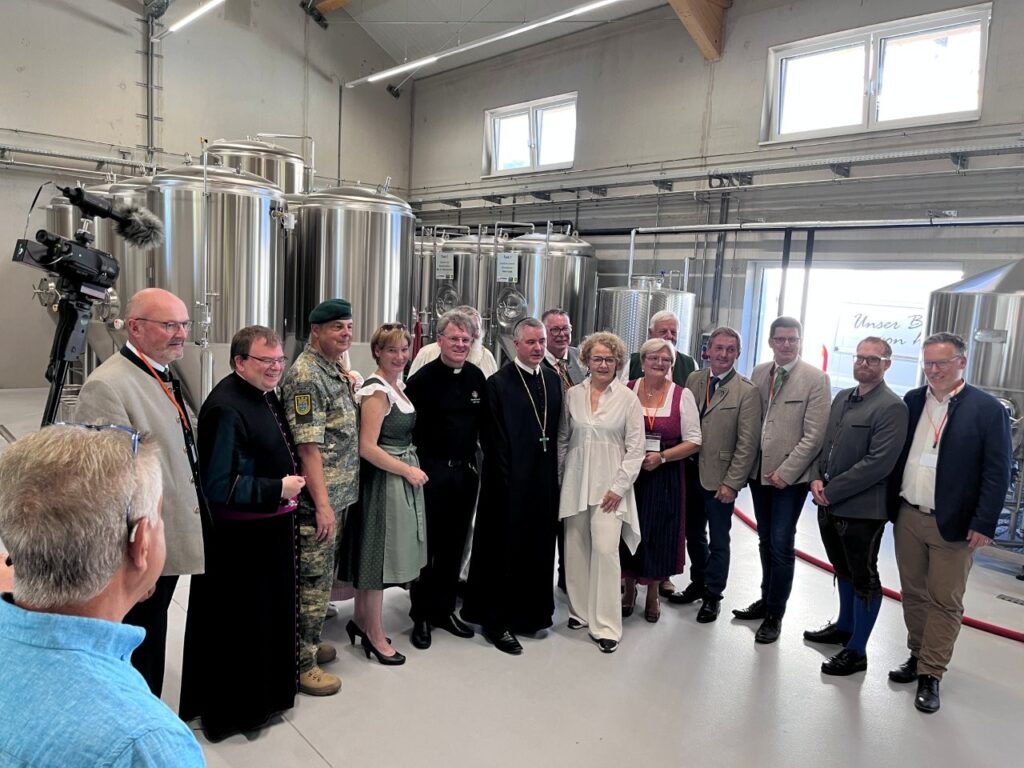 Am 21.9.2025 reise ich zur Eröffnungsfeier der nach langjähriger Planung am Areal des Bildungszentrums Pyhra errichteten Brauerei. Nach der Feldmesse und Segnung der Brauhalle durch den Göttweiger Abt Patrick Schöder spielt die Militärmusik NÖ für die zahlreichen Besucher. Es gibt auch kurze Führungen durch den Braumeister DI Thomas Stocker und ich kann die Brauerei besichtigen. Auf einer 10 hl Mavim-Anlage wird jeweils ein Doppelsud gebraut, die Lagerkapazität in den ZKG-Tanks beträgt insgesamt 250 hl, im Tank 1 reift bereits der Weihnachtsbock. Mit der neuen Anlage kann ein Jahresausstoß von 1.000 hl produziert werden. Aufgrund dieser Menge ist auch die Anschaffung einer neuen größeren Abfüllanlage geplant. Stocker braut in Zusammenarbeit mit Prior Pater Pirmin Mayer, der die Brautradition des Benediktinerstiftes Göttweig wiederaufleben lässt. Bei der Feier kann ich das untergärige St. Pöltner Spitzenbier und das obergärige Göttweiger Konventbier verkosten, beide sind sehr süffig bei der großen Hitze. Die neue Brauanlage steht auch den Schülern der Landwirtschaftlichen Fachschule Pyhra (Fachrichtung Lebensmitteltechnologie) zur Verfügung, die hier die Herstellung von Bier und Abfüllung erlernen können. Die Biere können im Ab-Hof-Laden der Schule und im Klosterladen des Stiftes Göttweig erworben werden. https://bierbrau.at